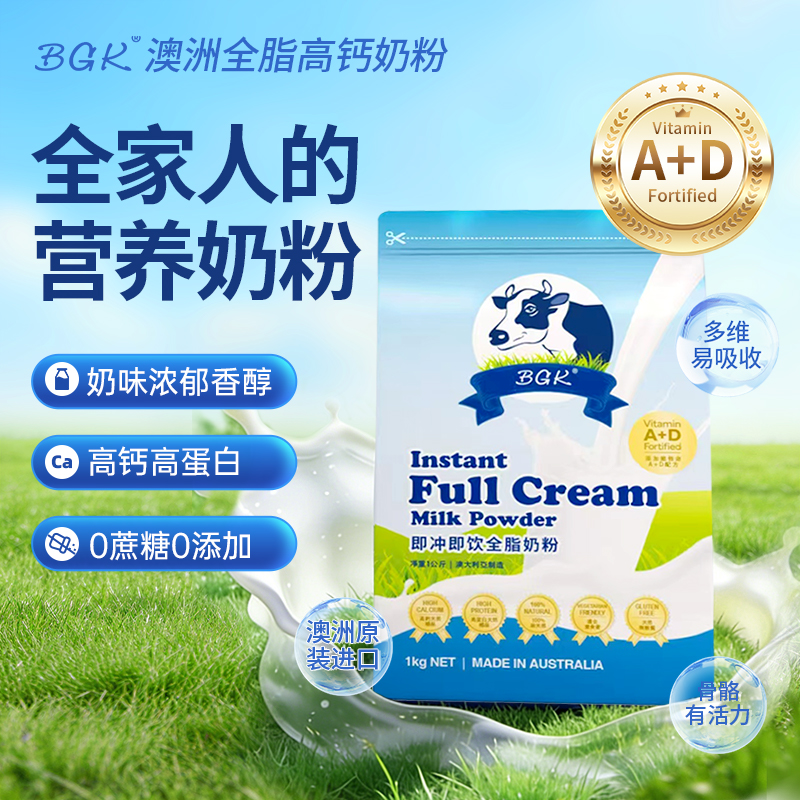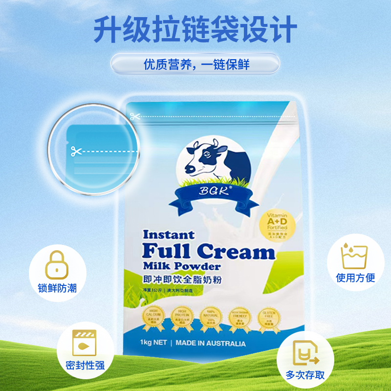 BGK 澳大利亚全脂奶粉 袋装(新装)1kg
