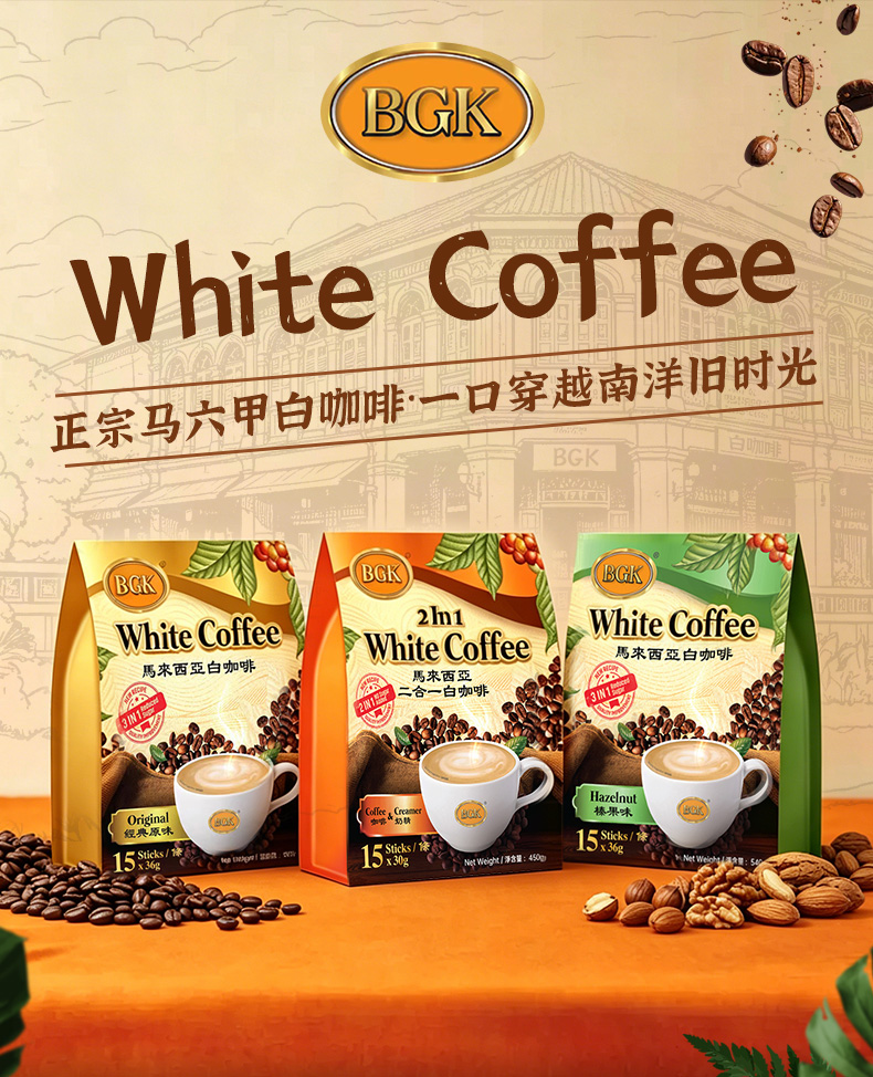 BGK马来西亚白咖啡榛果味 15条*36g