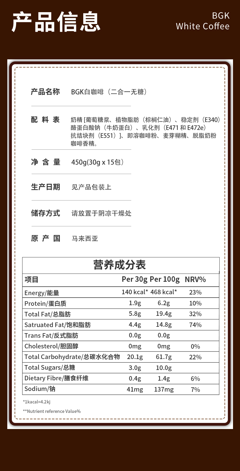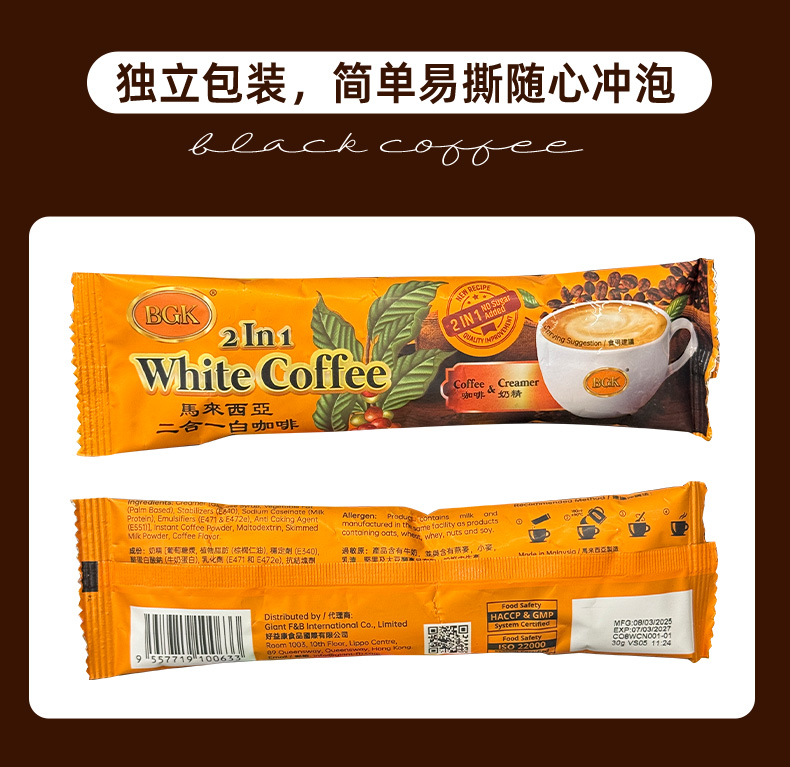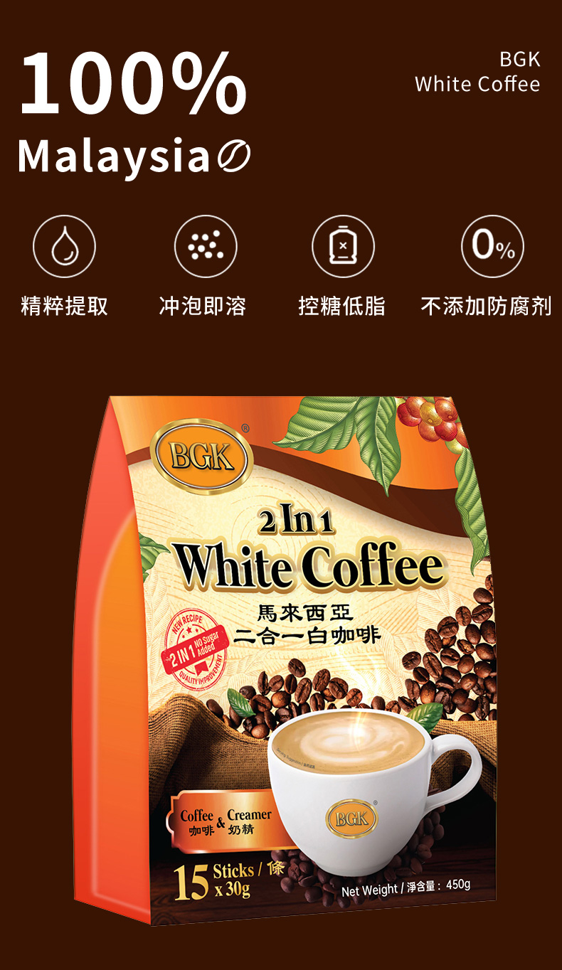 BGK马来西亚二合一白咖啡 15条*30g