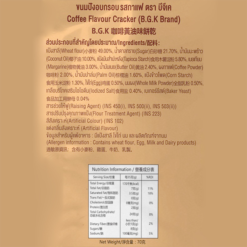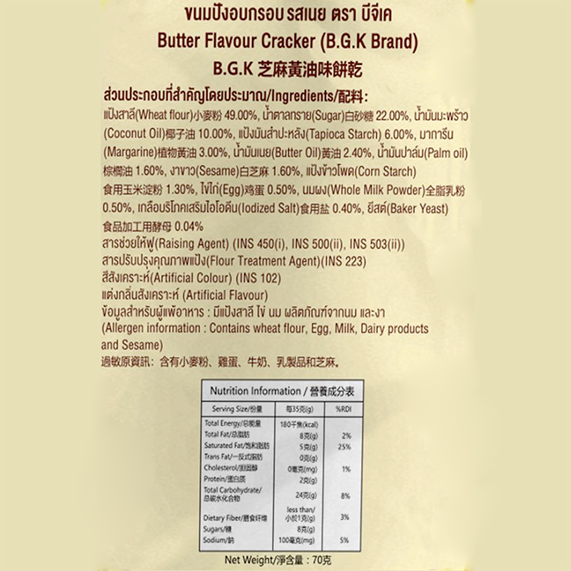 BGK 泰国 咖啡/芝麻黄油味餅乾 70g*4